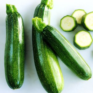Whole and sliced courgettes